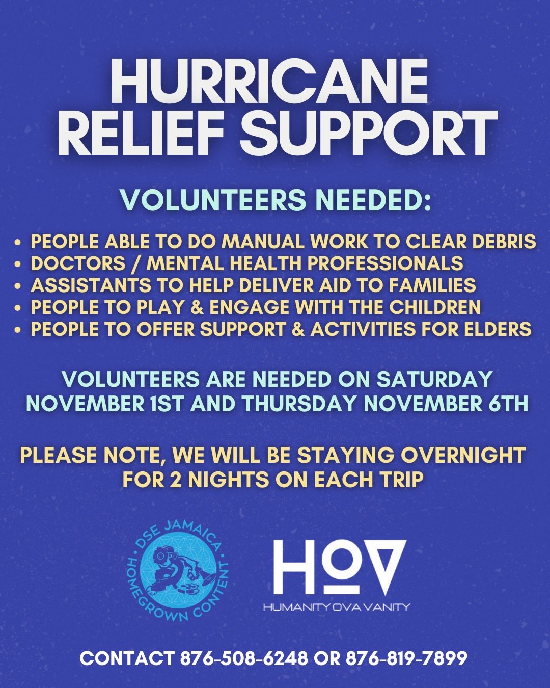 GoJ: The Government of Jamaica is calling for volunteers to support communities affected by Hurricane Melissa.